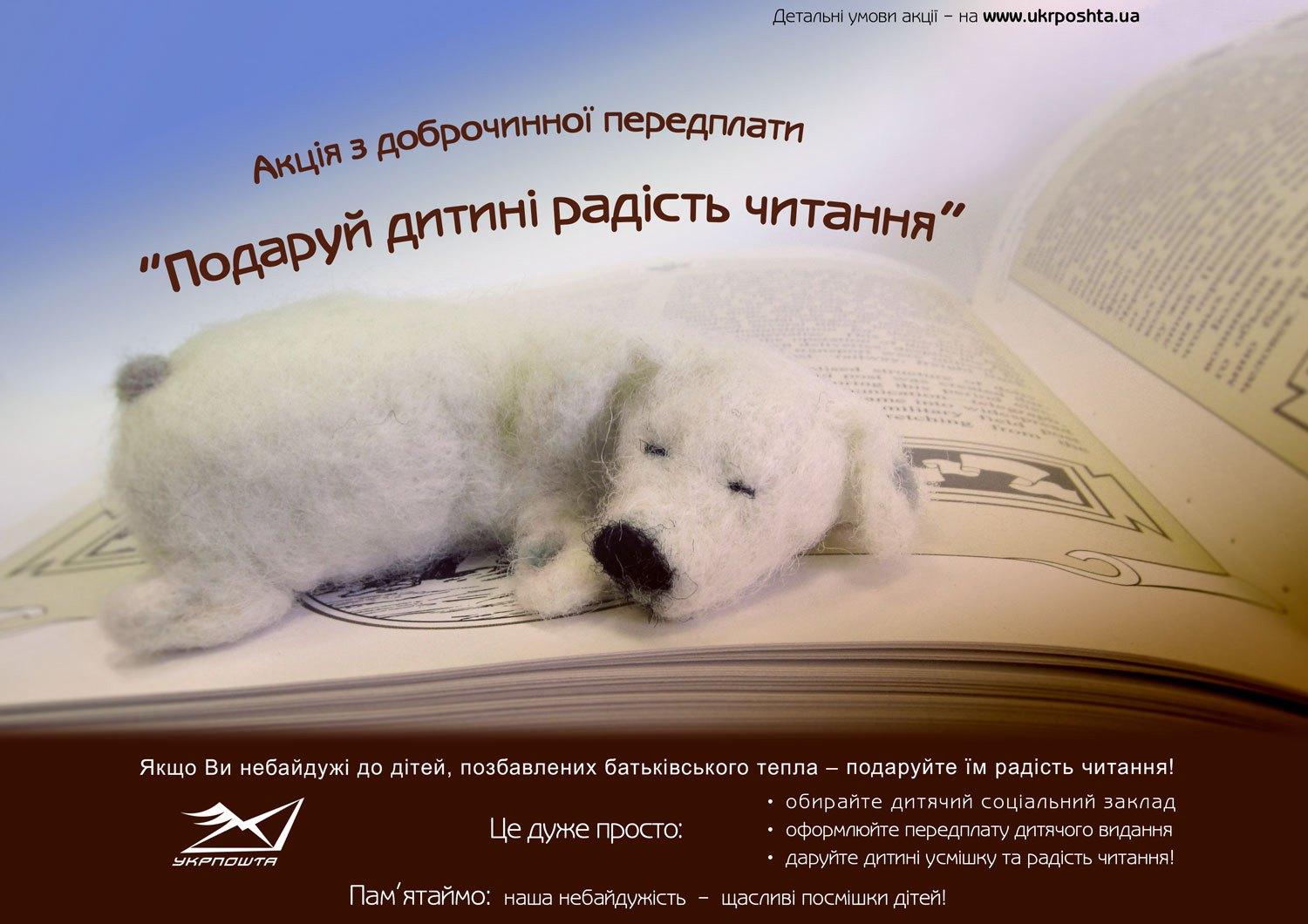 С 1 октября по 20 декабря текущего года Укрпочта организует Всеукраинскую акцию по благотворительной подписке «Подари ребенку радость чтения!». Национальный оператор призывает всех неравнодушных к проблеме социального сиротства в Украине приобщиться к благотворительности.