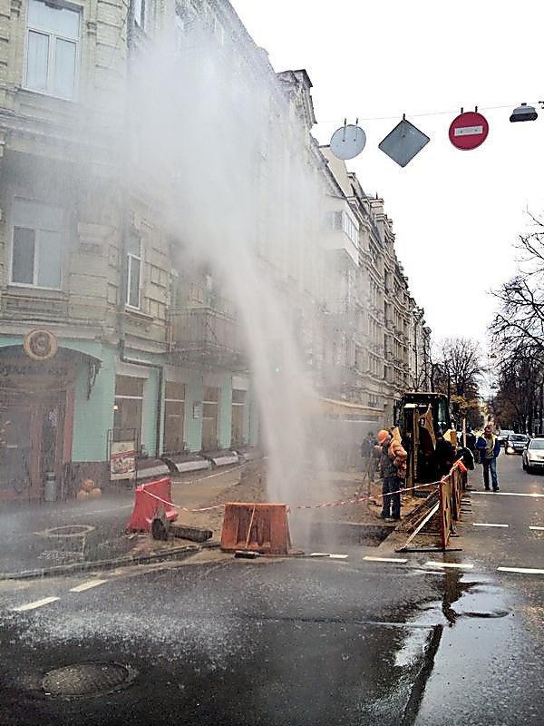«Трубы уже старые и где-то немножко лопаются — выдают фонтан. Ну, возможно, метров 5-10. Это же водичка — она «играет» туда-сюда», — прокомментировал инженер «Киевводоканала» Евгений Савченко.