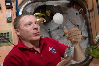 Эксперимент провел астронавт Терри Виртс. Он показал, что происходит, если поместить шипучую таблетку в плавающую в условиях невесомости порцию воды.
