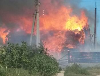 В Мелитополе на улице Дружбы, 48 горят деревянные постройки из сруба.