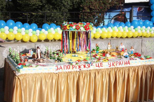 Сегодня, 3 октября, в Запорожье состоялась церемония открытия Покровской ярмарки. После торжественной части горожан угостили традиционным атрибутом праздника – тортом, весом 250 килограммов. Его украшали достопримечательности Запорожья, герб города, а также год первого упоминания о городе на Днепровских порогах – 952 г.