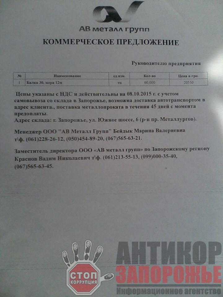 Одна из крупнейших и известнейших компаний по поставке металлопроката УГМК даже по мелкооптовым расценкам продает тонну двутавровых балок примерно за 17 тысяч грн. Тогда как по официальным (!) документам УКСа, предприятие выбирало из трех малоизвестных поставщиков с расценками около 21 тысячи грн, еще и отличающимися на 30 грн (за тонну!) или не отличающимися вовсе. Налицо – признаки отсутствия реального конкурса и реальной конкурентной борьбы между поставщиками, уверяют депутаты.