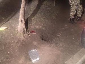 «На Владимира Парасюка сегодня было совершено покушение. Неизвестное лицо бросило в Владимира боевую гранату типа РГД-5 или РГО. Только по счастливой случайности никто не пострадал. Осколки приняли на себя припаркованные рядом с подъездом автомобили. На место немедленно выехала следственно оперативная группа и начальник Киевской полиции Андрей Крищенко. Я также приехал на место теракта чтоб поддержать моего коллегу. По факту покушения на жизнь народного депутата Владимира Парасюка возбуждено уголовное дело по статье 112 уголовного кодекса — покушение на жизнь государственного деятеля. На фото : воронка от взрыва гранаты. На полиэтиленовом пакете — остатки гранты и взрывателя на котором будут искать остатки ДНК преступника бросившего гранату. В криминалистике были случаи, когда это удавалось сделать».